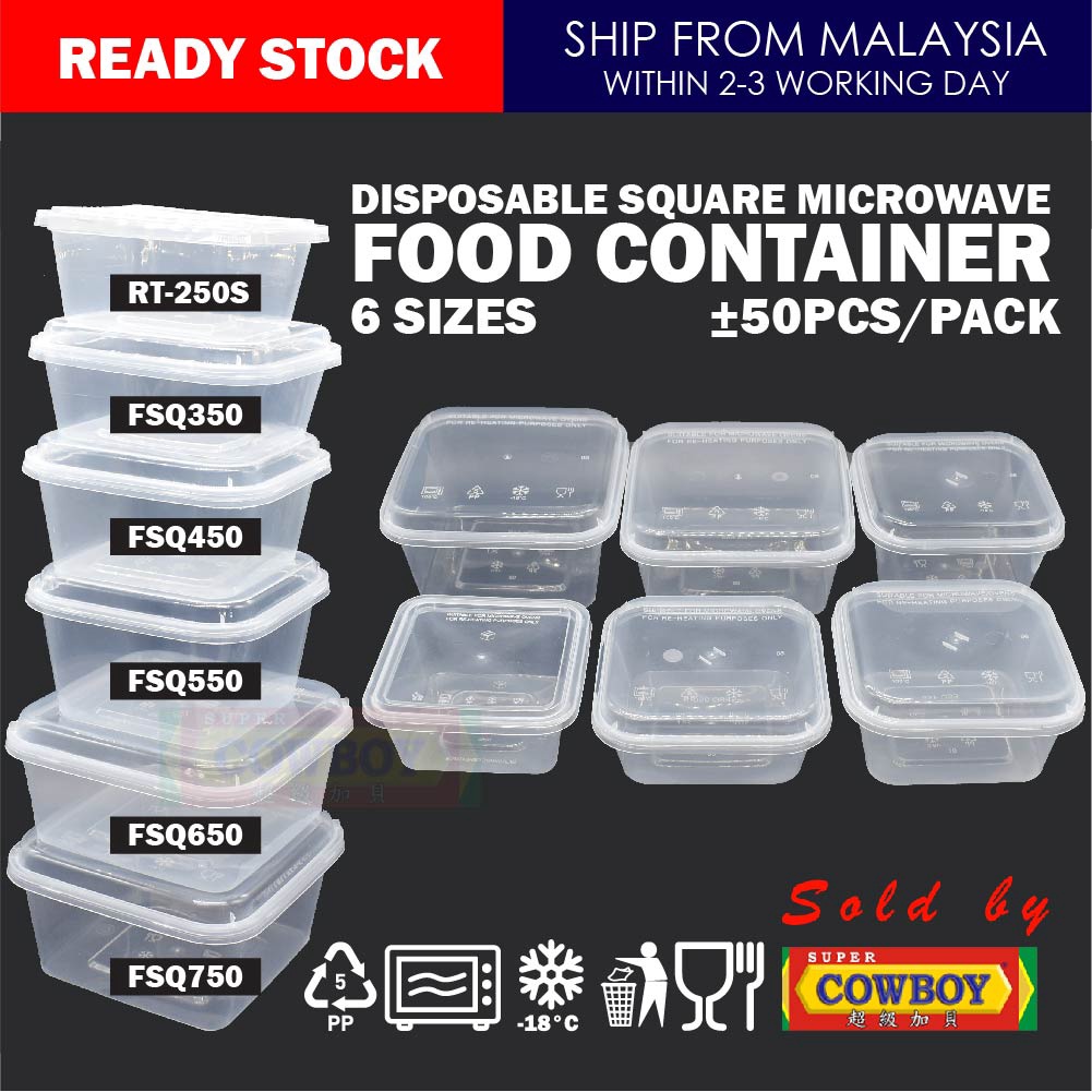 50pcs Square Microwave Food Container With Lid Bekas Plastik Kek Pp Food Storage Packaging Fsq250 350 450 550 650 750 Shopee Malaysia